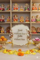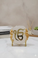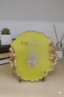 Enhance your home or workspace with this Premium Resin Decorative Plaque, crafted to bring a touch of elegance and serenity to any setting. Made with high-quality resin, it features a smooth glossy finish and beautifully accented edges with gold embellishments and pearl-like details. The plaque sits on sturdy, stylish stands that make it perfect for display on desks, consoles, shelves, or gifting for special occasions.